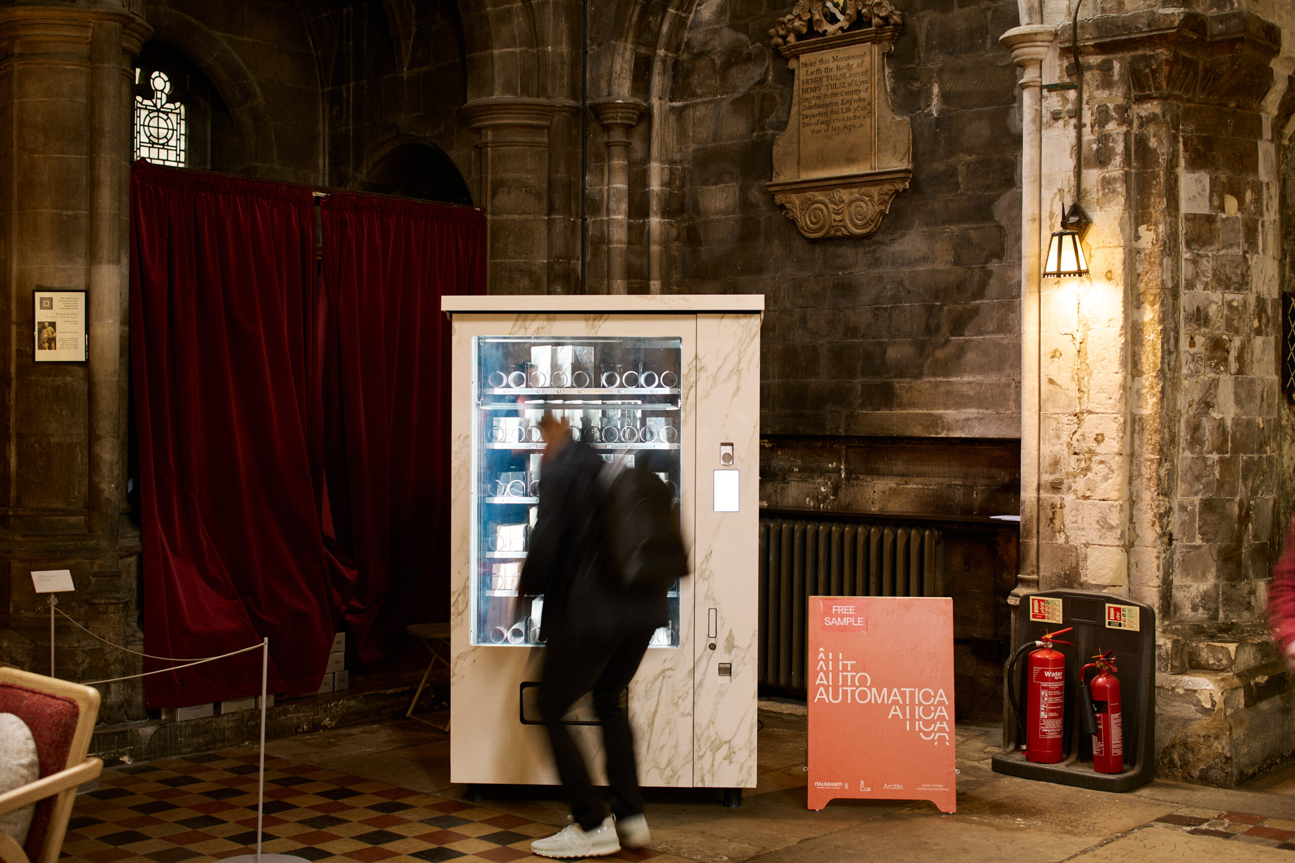 The project was commissioned by Italgraniti, designed by Simon Astridge Architecture Workshop in partnership with Solus, and built by Arcitile. Automatica transformed everyday vending machines into strange and beautiful objects. Each clad in a different porcelain tile from Italgraniti, the machines dispensed tile samples in exchange for brass tokens, inviting reflection on the value of materials, labour and design. “We were fascinated by what happens behind the scenes at Italgraniti: the sheer scale of production, the choreography of the machines,” said architect Simon Astridge. “We wanted to mirror that automated process in a format that was public, playful and poetic.”